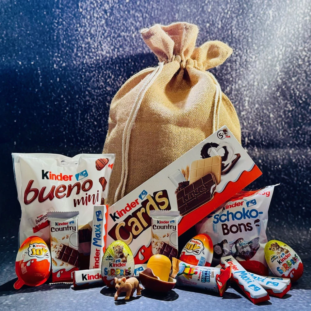 Uvnitř na vás čeká pestrý mix oblíbených produktů Kinder – od legendárních vajíček Kinder Surprise s hračkou, přes Kinder Bueno mini, Schoko-Bons, až po Kinder Cards a Country. Ideální dárek pro děti, narozeninové oslavy, Mikuláše nebo jako sladké překvapení pro každou příležitost.